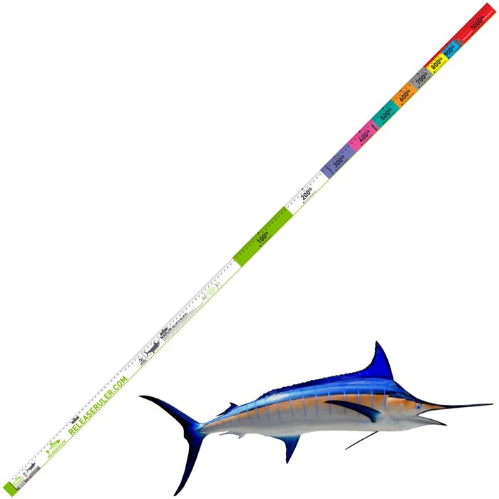- The Blue & Black Marlin ruler is 3IN wide and 150IN long, recording up to 1000LB Marlin