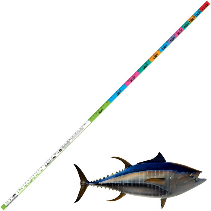 - The Bluefin Tuna ruler is 2IN wide and 125IN long, recording up to 1000LB Tuna