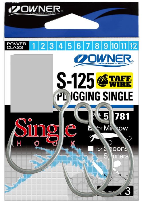 The Owner Stinger Lure hooks are your guarantee for hook ups that hold. It is becoming increasingly popular to choose single hooks over trebles for many of our fishing lures. The fashion is spreading as the practice of catch and release becomes part of the recreational angler’s staple. The critical process of adding hooks to your favourite lure is to ensure that balance, castability, action, depth and overall swimming specs are maintained. The S-125 Stinger Lure Hooks are developed with his very issue in mind. Owner are, of course, right across this issue and have put in all the research and development to ensure that your fishing lures maintain their specified action regardless of a change in hooks. The S-125 series are perfect for you hard bodied trolling and casting lures.