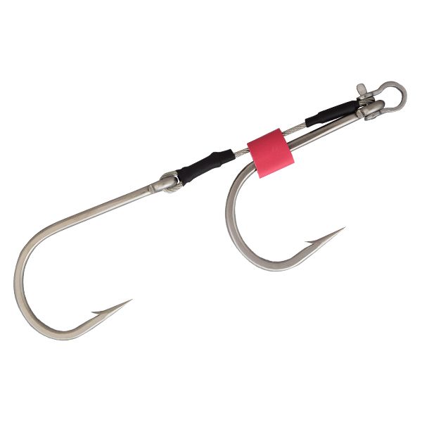 Fish with confidence using our durable twin-hook rigs. Designed in Japan, these high-quality stainless steel hooks are forged for strength. IGFA legal, they come pre-rigged with 400kg crimped wire and a 430kg stainless steel shackle.