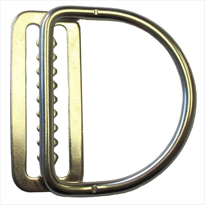 50mm stainless steel retaining clip with handy D-ring attachment point. For use with all 50mm webbing.