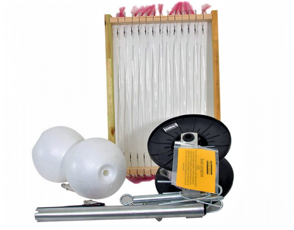 Comes complete with buoys lead filled grapnels both with shark clips, Trace rack, Non tangle traces with flasher longline hooks, droppers.