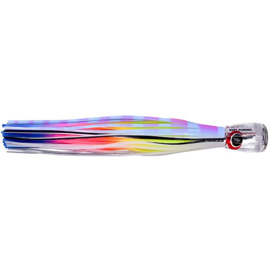 The Soft Pusher features new “soft head” technology. It is commonly believed that if a marlin misses the lure on its first strike, it is far more likely to make a second strike if the lure head is made of a softer material rather than a harder resin.