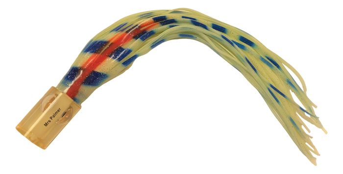 It's double-skirted with a glow bead to set the hook back further. It's specially designed to produce realistic baitfish action. Plus the unique Mrs Palmer pattern adds that extra attraction that drives fish wild as it moves enticingly in water.