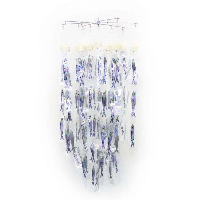 The triple strand mylar strips have reflective laminated images of lifelike baitfish. The reflective images reflect