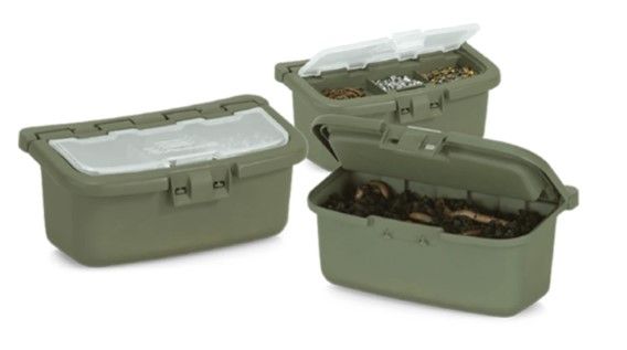 Store worms or other bait in large open section; top tray holds terminal tackle