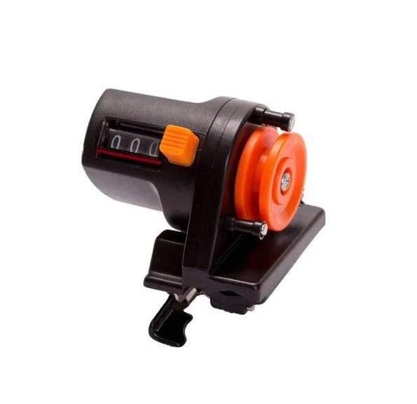 Fishing line counter for spooling can accurate to 999m with minimal line slippage. Each foot of fishing line is measured as it passes through the counter. 3-digit depth window shows reading in meters.