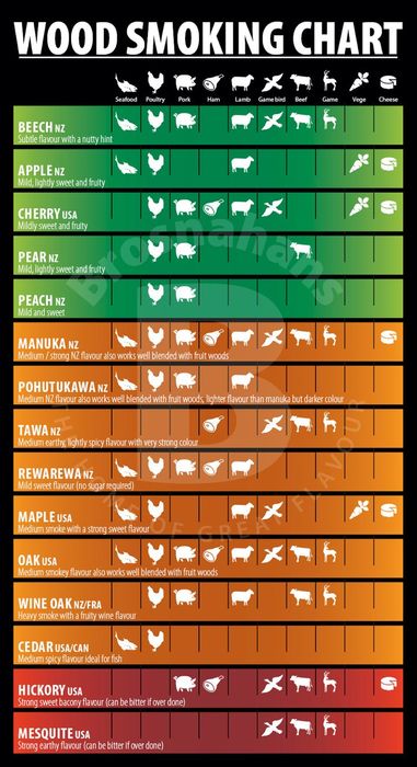 See image #2 in order to pair your meat for smoking with the best option of wood chips.