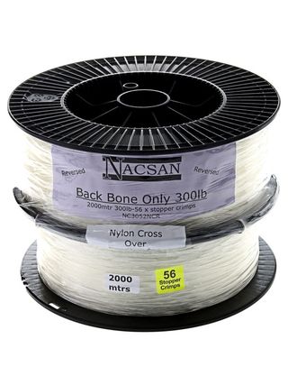 Includes 2000m 300lb mono with reverse crimps spaced through the line
