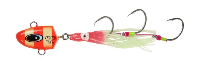 Designed with an intense UV glow Dhu Bomb head and tied with high quality Harbor hooks, Japanese assist cord, stainless steel split rings and finished with a glowing lumo squid, the Vexed Bottom Meat won’t let you down.