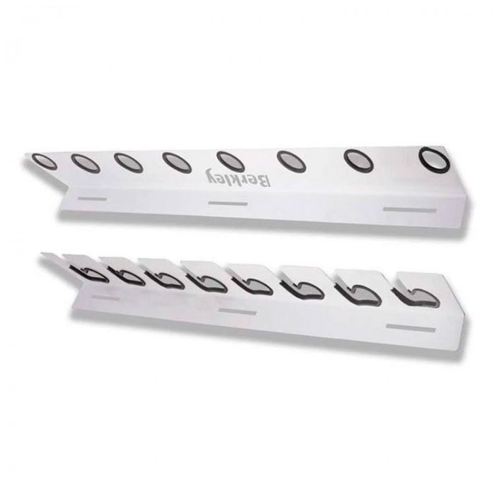 Keeping your rods neat and tidy in the garage can be a challenge. Not with the Berkley wall and ceiling rod rack. Constructed from powder coated metal with plastic inserts to protect your rods. Both pieces feature slots and hardware to easily mount on wall studs or ceiling trusses.