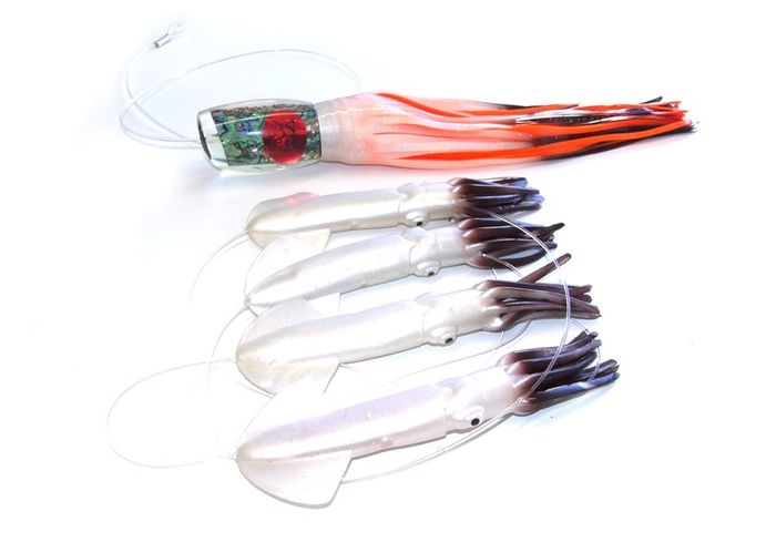 The Submission Teaser is made up with 9 inch squids and a soft head Submission lure connected on the back. This chain is the ultimate fish raiser when run for any kind of billfish. With its low drag this is the perfect teaser to pull from a bridge teaser reel, electric reel or just simply off a handline but be careful as this teaser will bring fish directly to it! Try one in your spread today you will no be disappointed! Available in 5 fish catching colours.