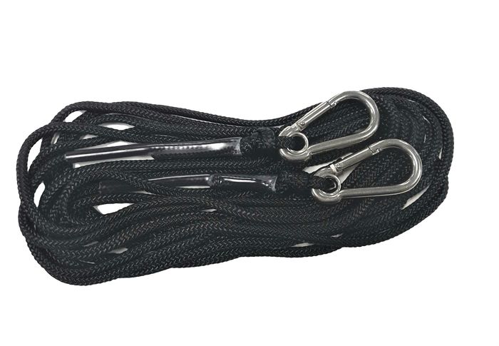 Made from strong, slightly stretchy surf leg rope material with marine grade stainless steel clips & hard wearing black VB cord for looping around cleats