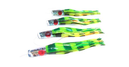 The Bonze Volcano Teaser is made up with 9 inch squids and a soft head Volcano lure connected on the back. This chain is the ultimate fish raiser when run for any kind of billfish. With its low drag this is the perfect teaser to pull from a bridge teaser reel, electric reel or just simply off a handline but be careful as this teaser will bring fish directly to it! Try one in your spread today you will no be disappointed!