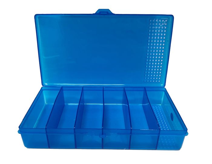 The Fjord Lure Box Size C is made from plastic and has the following dimensions: 205 mm long, 108 mm wide, and 33 mm deep. It features six separate compartments, making it suitable for storing and organizing small lures. One of the compartments is designed with holes specifically for washing your lures with fresh water. This feature allows you to clean your lures conveniently and keep them in top condition.